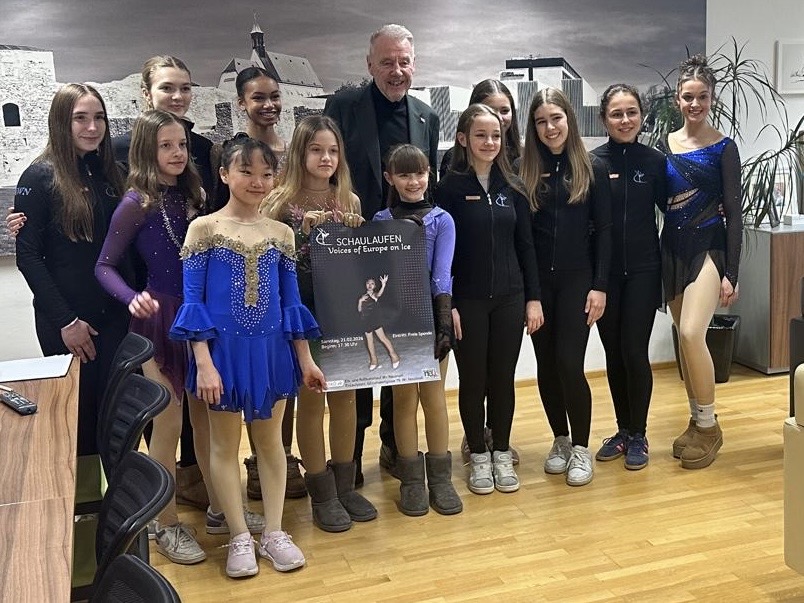 Besondere Anerkennung: von März bis Oktober nehmen viel von ihnen bis zu fünfmal pro Woche lange Fahrten nach St. Pölten oder Bruck an der Leihta auf sich, um in den Eishallen trainieren zu können. „Dieses Engagement gehört gefördert“, so die Worte des Stadtoberhauptes. Im Zuge des Besuches wurde auch das Plakat für das heurige Schaulaufen am 21.Februar 2026 präsentiert und eine herzliche Einladung ausgesprochen.
