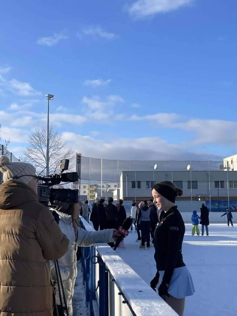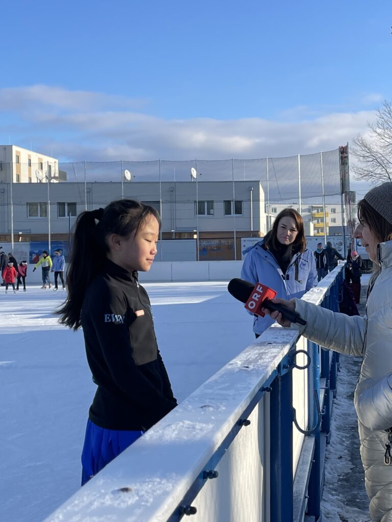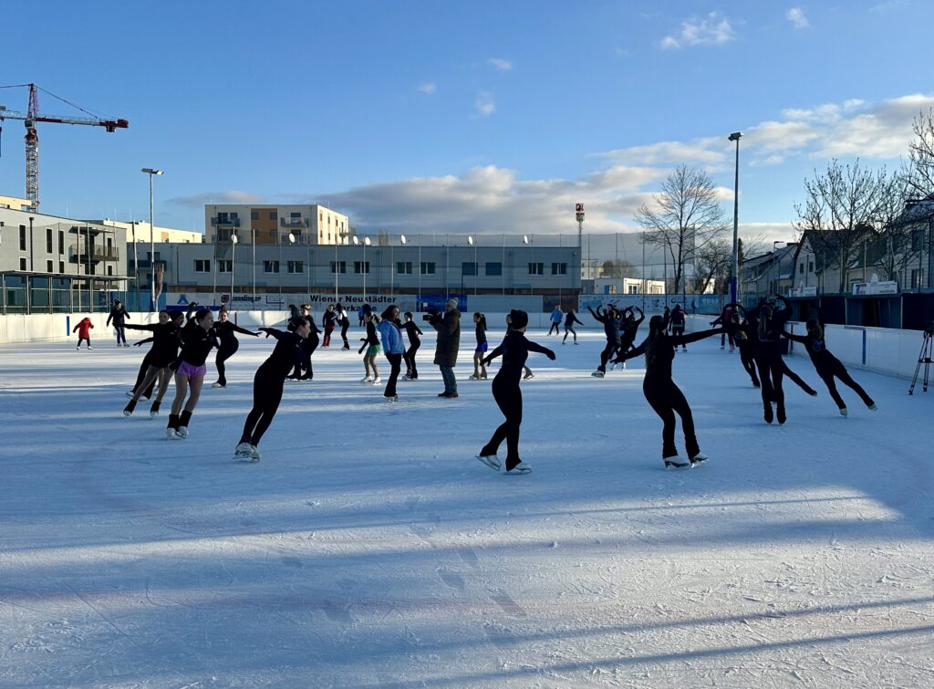 Strahlender Sonnenschein und motivierte Sportler:innen begrüßten am 18. Jänner ein Team des ORF NÖ am Eislaufplatz in Wiener Neustadt. Bei den zweistündigen Dreharbeiten wurden Sprüngen, Pirouetten oder Figuren vorgeführt und Interviews mit Läuferinnen sowie der sportlichen Leiterin des Vereins, Marlies Nevosad aufgenommen.