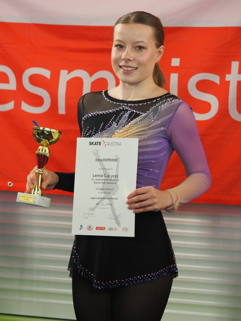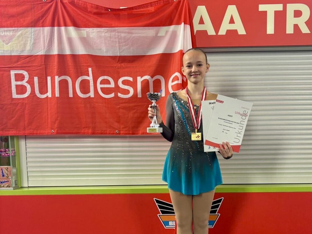 Unsere jüngsten B Läuferinnen (Carla, Emily, Lilly, Sophia und Tamaki) schafften es diesmal großteils ins Mittelfeld. A Läuferin Mia errang in ihrer Gruppe (Jugend 2A Pre Novice) Platz 14, bei der ASKÖ Bundesmeisterschaft aber sogar Platz 2. Doppelten Grund zum Jubeln gab es dann in der Gruppe Jugend 2B Pre-Novice älter. Platz 1 holte sich Venice, die schon in der vergangenen Saison als Skate Austria Gesamtsiegerin in der Gruppe 1B Juvenile auf sich aufmerksam gemacht hatte. Ganz knapp gefolgt von Miriam die nur um 0,04 Punkte weniger erzielte und so Platz 2 am Stockerl einnehmen durfte. Beide haben damit den Aufstieg in die nächste Gruppe geschafft.